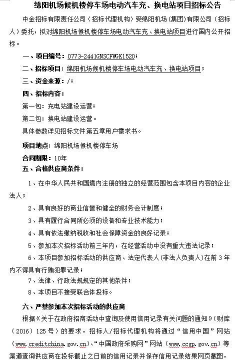 綿陽(yáng)機(jī)場(chǎng)候機(jī)樓停車(chē)場(chǎng)電動(dòng)汽車(chē)充、換電站項(xiàng)目招標(biāo)公告